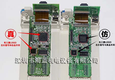 3、內部,真品每塊電路板上都有三菱Logo。仿品電路板上沒有三菱Logo。