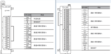 區(qū)別四:最大絕對輸入量不同,FX3U-4AD的電壓最大絕對輸入為±15V ,電流最大絕對輸入為+30mA; FX3U-4AD-ADP的電壓最大絕對輸入為-0.5V、+15V,電流最大絕對輸入為-2mA、+30mA。