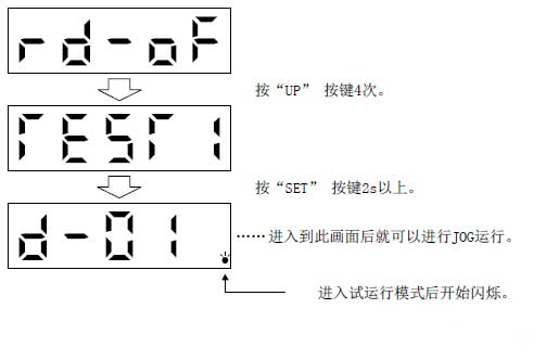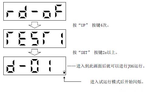 ◎JE-A進(jìn)入測試運(yùn)行模式的方法(在伺服本體上操作):