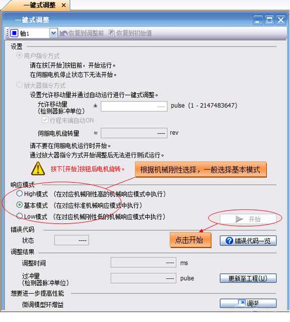 窗口中的三菱伺服參數(shù)即是伺服一鍵式調(diào)整時(shí)自動調(diào)整的參數(shù)。