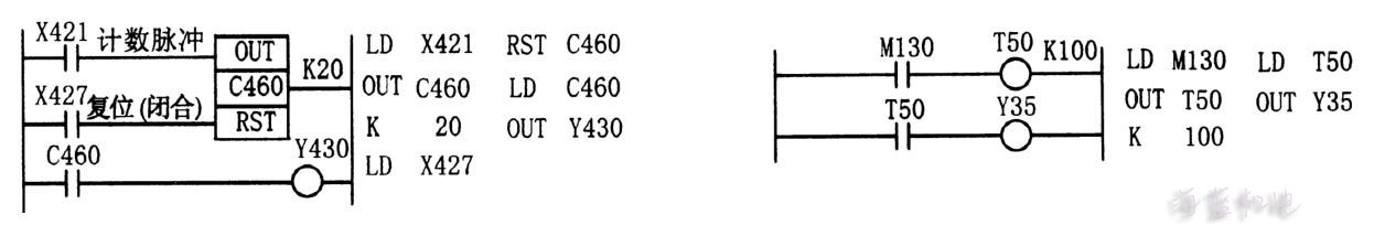 計數器輸出觸頭C460 接通,使輸出繼電器 Y430 得電。X427 閉合時,C460 復位并斷開